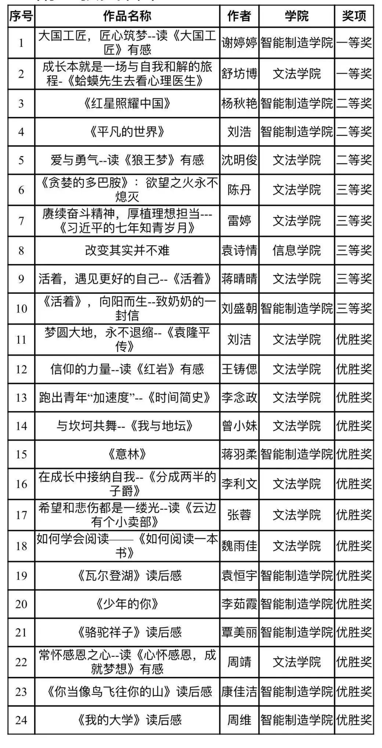 最是书香能致远,腹有诗书气自华。读一本好书,就像与一个高尚的人谈话。读书是一种精神,一种力量,更是一种责任,决定着一个人的修养和境界,更关系到一个民族的素质与未来。此次主题征文活动鼓励大家以阅读过的一本书,或阅读经历为话题,结合自己的学习、工作经历,引导广大师生齐读书、共成长,在校园里掀起新一轮读书热潮。活动开展以来,涌现了一批优秀的征文作品,通过评委专家组认真评审后,共评选出24件获奖作品。