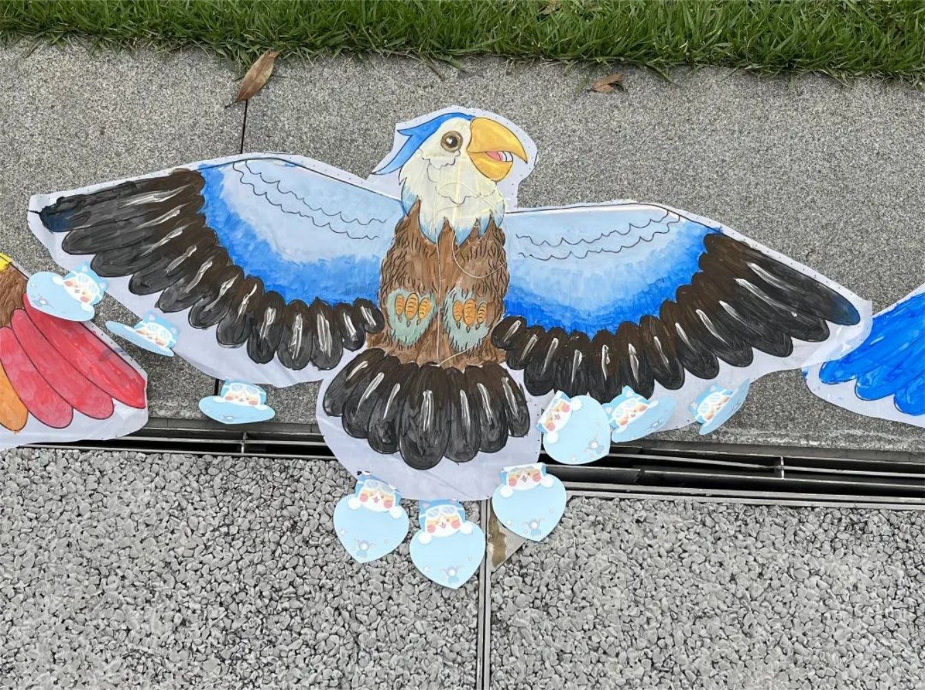 评选结束后,大家在草坪上奔跑起来争相放飞了自己的风筝,天空中随即出现了一幅幅多彩的图案,为充满活力的初夏增添了几分耀眼光彩。