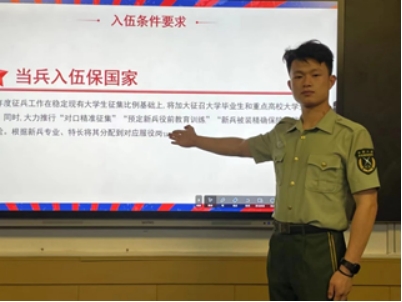 最后,退役大学生詹瑶和刘俊豪为同学们介绍参军入伍的优待政策和福利待遇,并对同学们的疑问做出耐心解答。