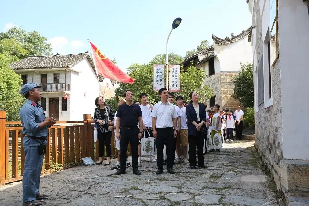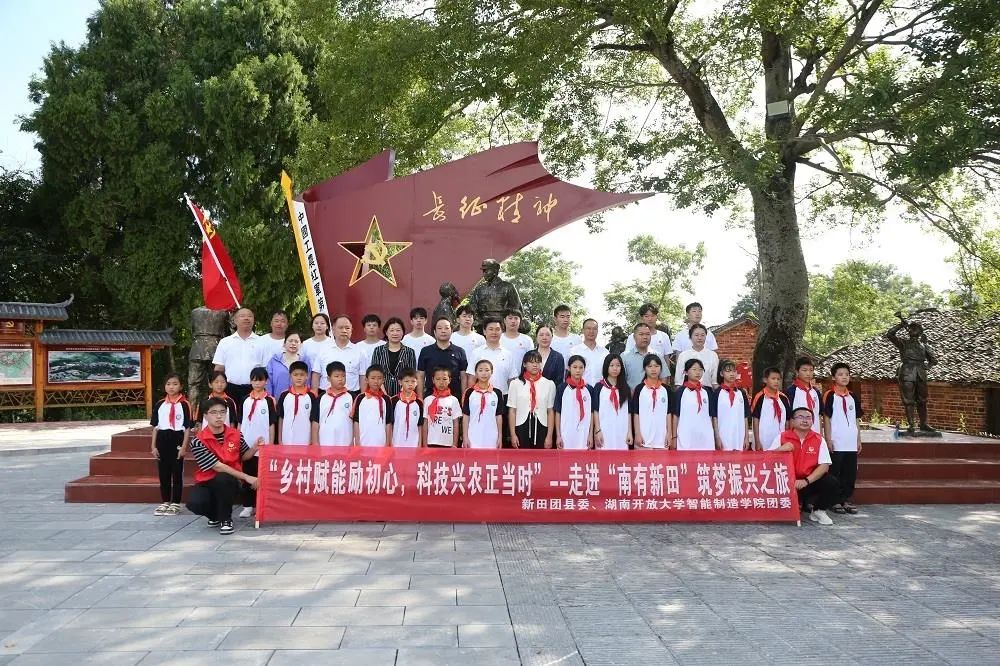 启动仪式后,唐清林一行参观了小源会议旧址,开展了防溺水学习课堂。随后,湖南开放大学智能制造学院E起“触电”乡约新田三下乡实践团全体成员参观了蒋先云故居。