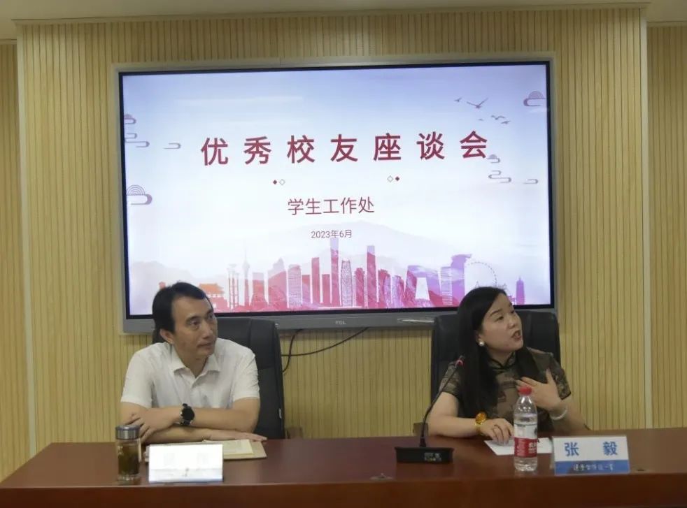 近日,“以梦为马,不断攀高”优秀校友座谈会在终身教育大楼1901会议室举行,优秀校友2005级文秘专业的学生,现任长沙师范学院体育科学学院综合办主任张毅返校与学生交流。座谈会由学生工作处处长曾伟主持,部分学生代表参加。