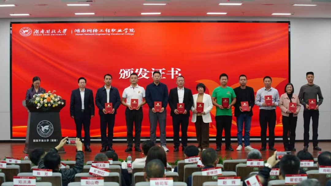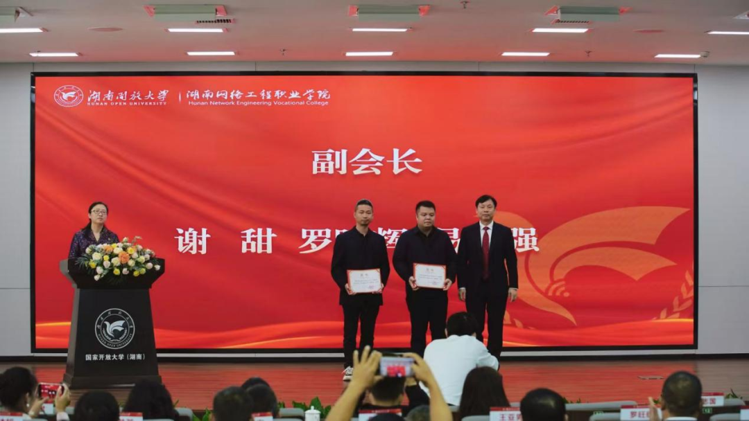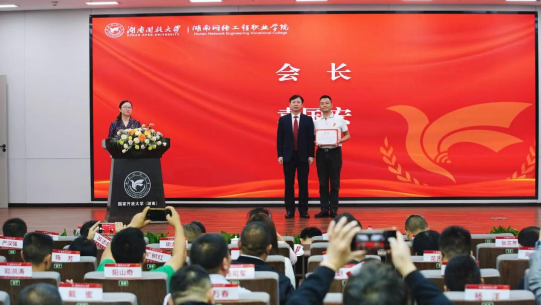 “湖南开放大学办学体系杰出校友”称号的校友颁发证书