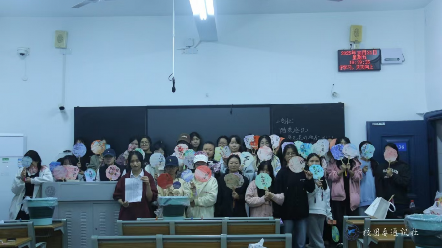 活动尾声,参与的同学手持自制漆扇合影留念,纷纷表示通过亲身体验,既掌握了非遗技艺的基本方法,更感受到中华传统文化的深厚底蕴。本次活动不仅是一次技艺传承的实践,更是一场美学思维的碰撞。同学们在创作中深刻体会到传统工艺“天人合一”的哲学理念——水面作为天然画布,颜料随水流自然晕散,最终通过人工干预形成有序图案,恰是“随漆逐流”与“美的秩序”的完美诠释。三创手作协会后续将持续开展此类文化传承活动,为校园注入更多传统美学活力。