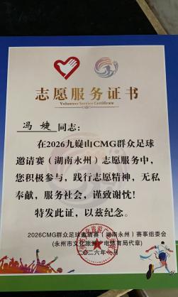 湖南省永州市参加“CMG群众足球邀请赛志愿服务活动”活动期间,主要负责引导观众入场,维持现场秩序等相关工作,及时提醒现场人员遵守秩序,主动应对各类突发情况,全力保障活动现场的有序开展。