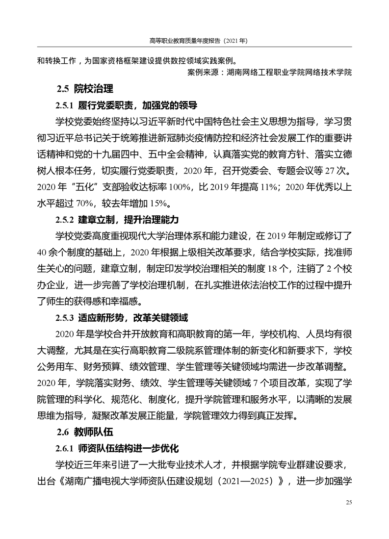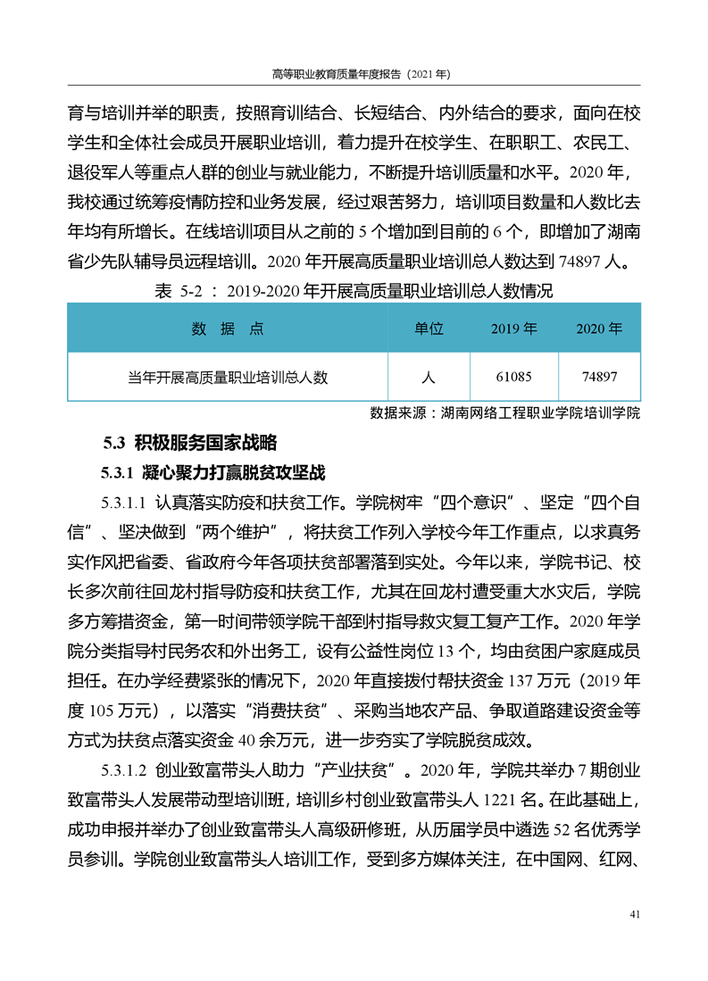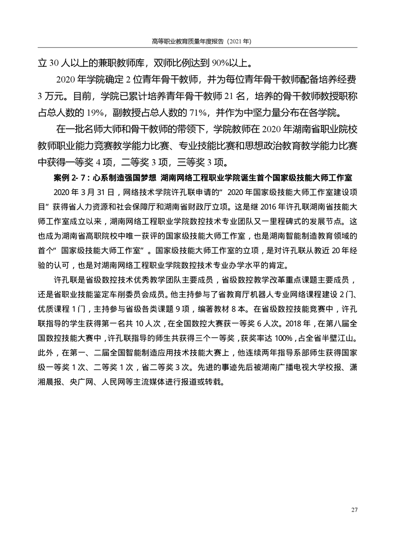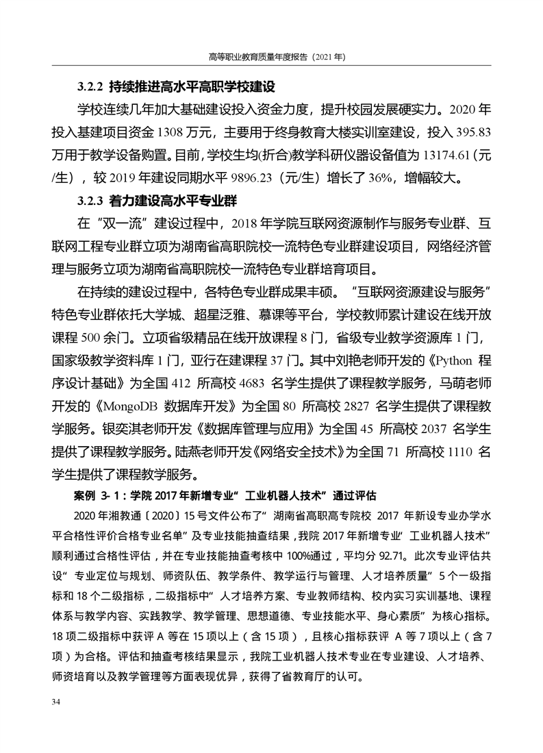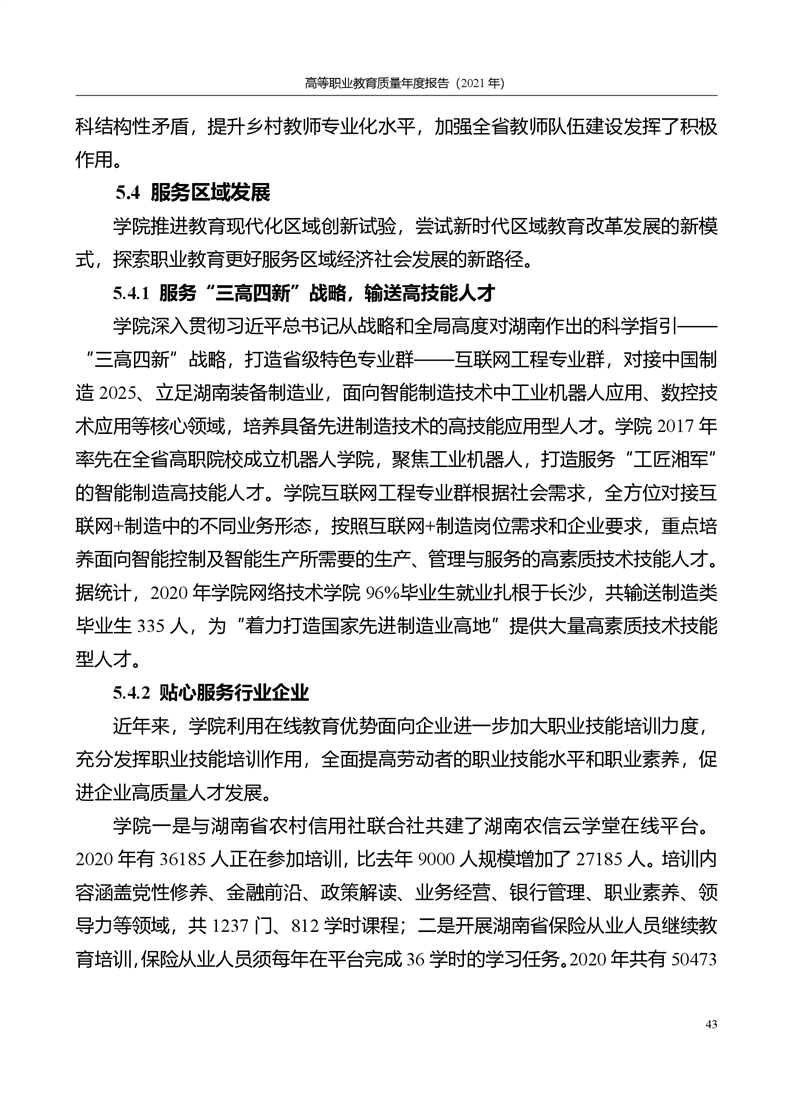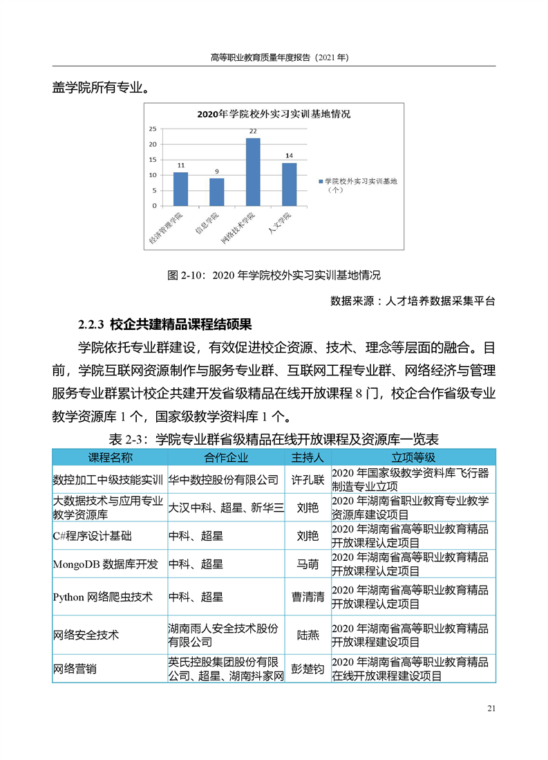 湖南网络工程职业学院高等职业教育质量年度报告(2021)