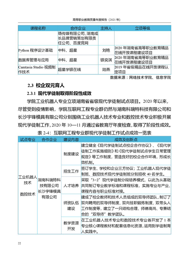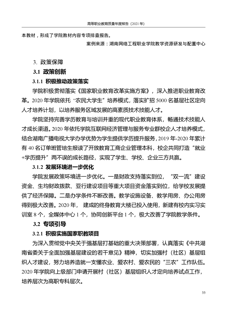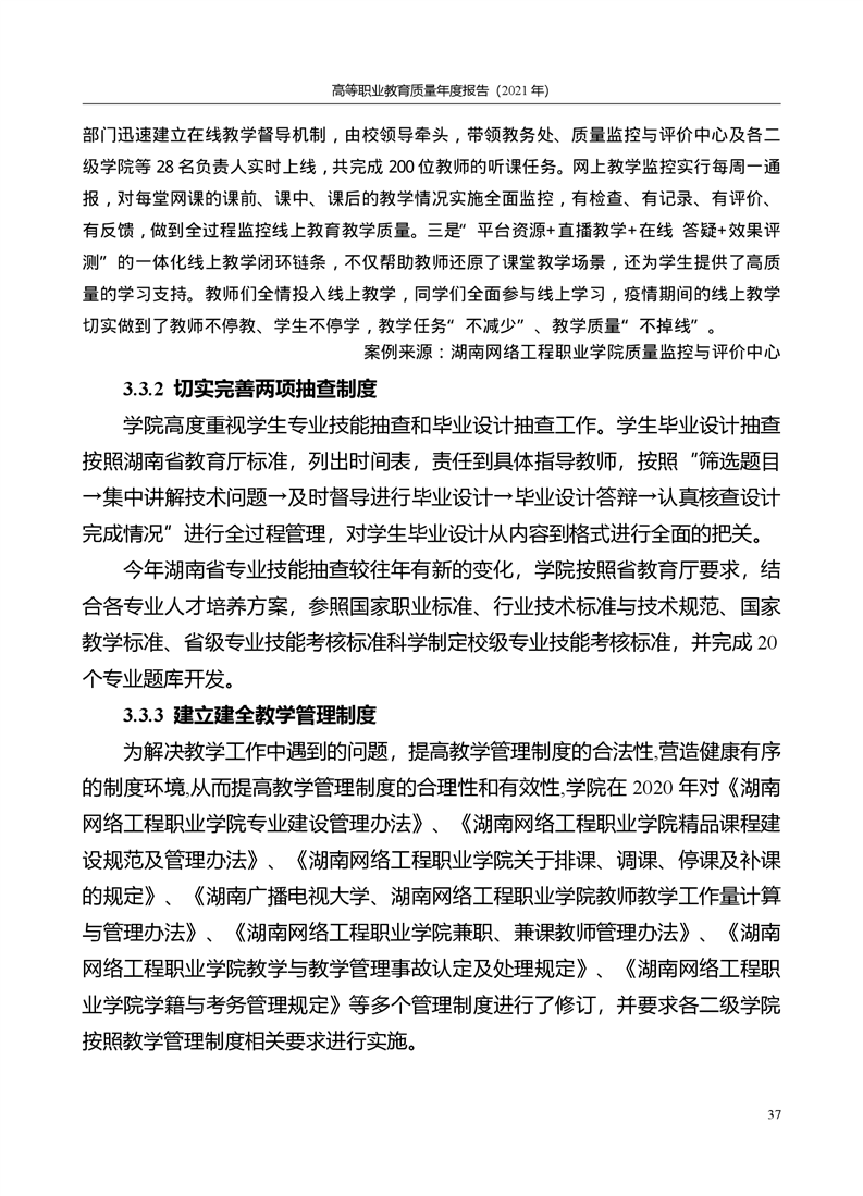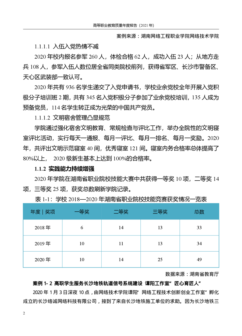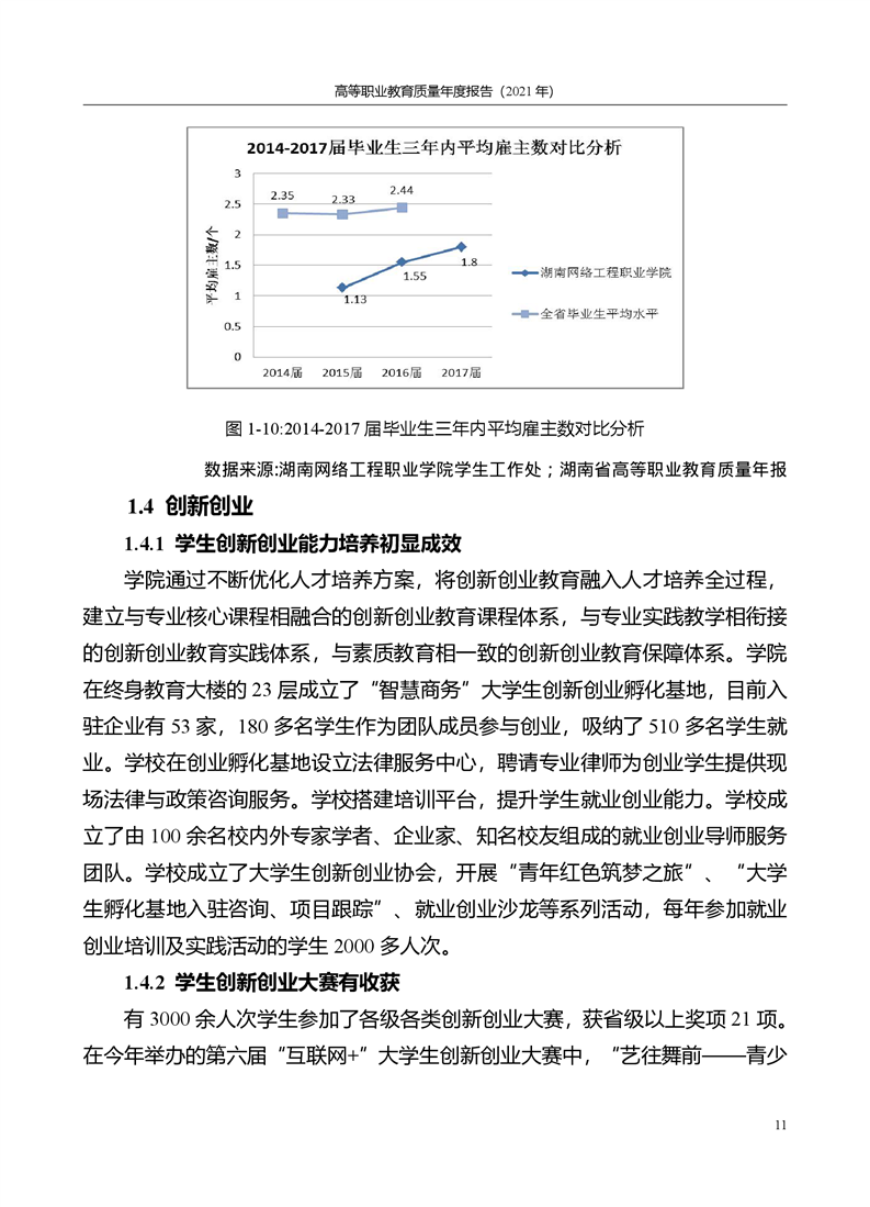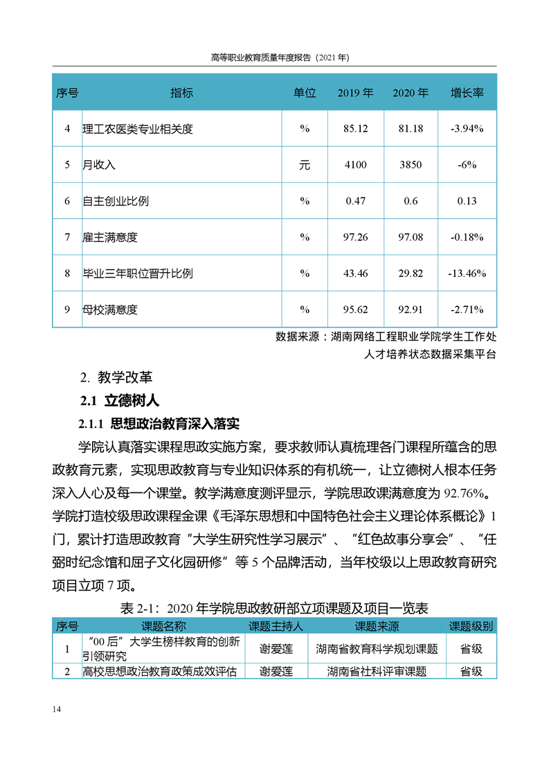 湖南网络工程职业学院高等职业教育质量年度报告(2021)