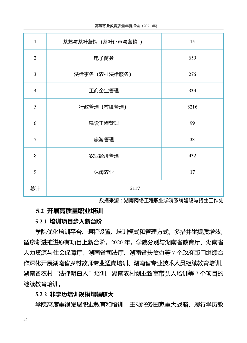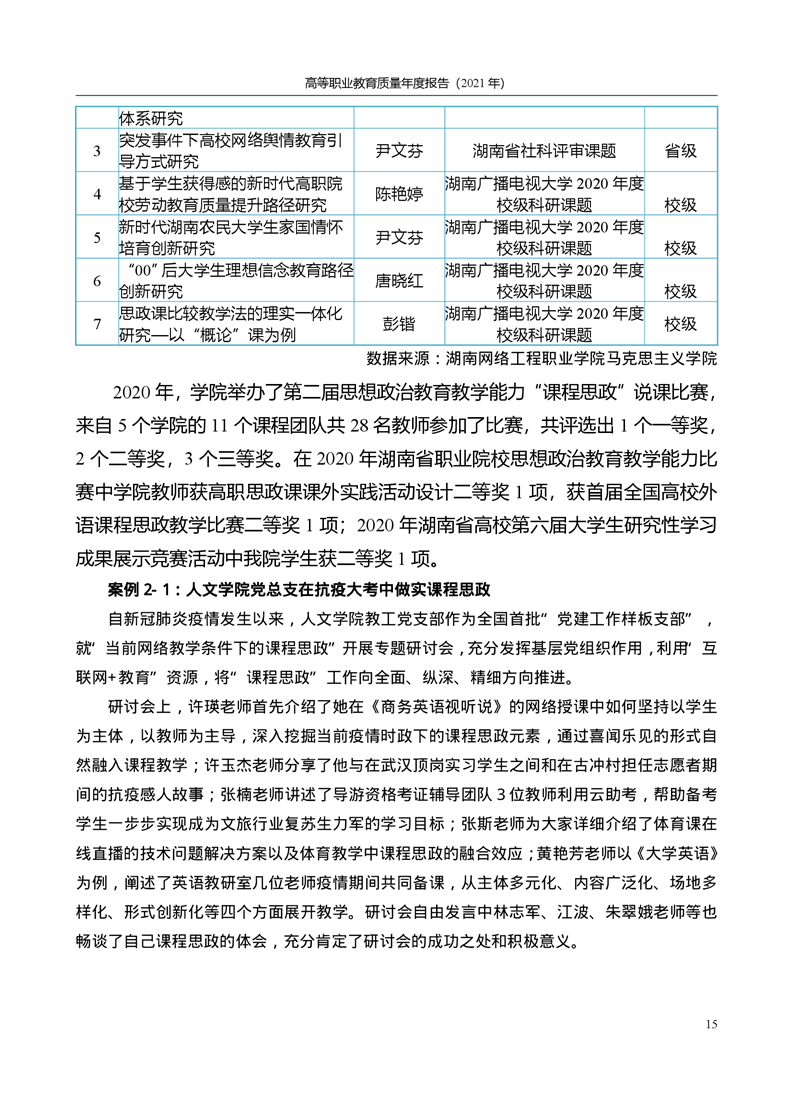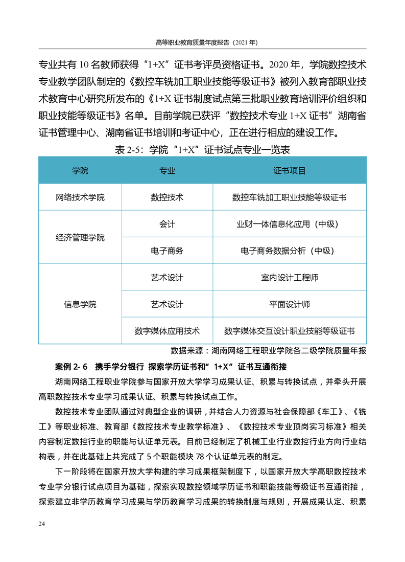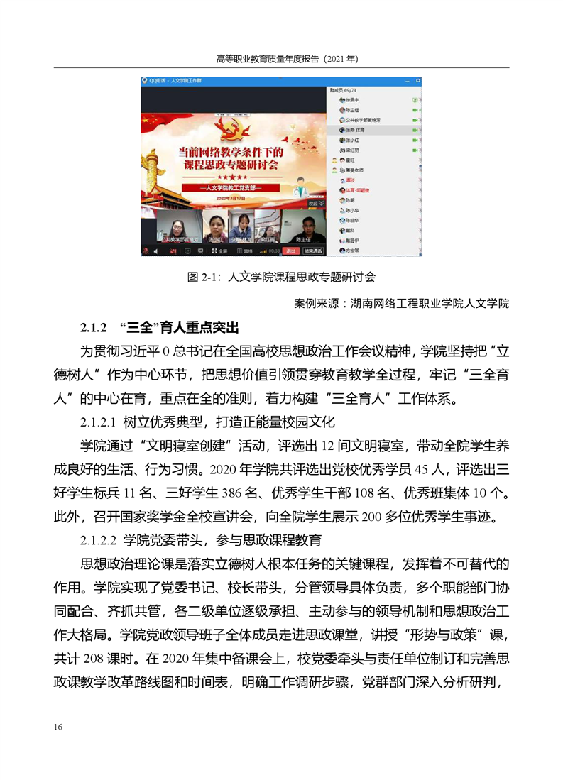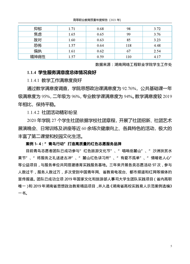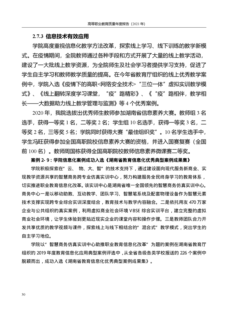 湖南网络工程职业学院高等职业教育质量年度报告(2021)