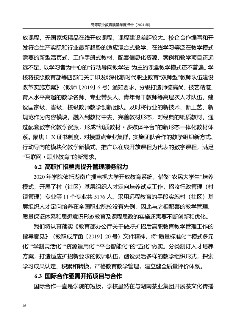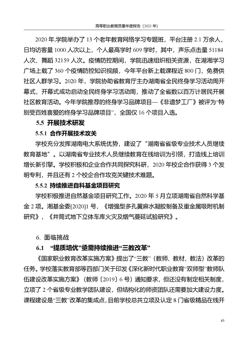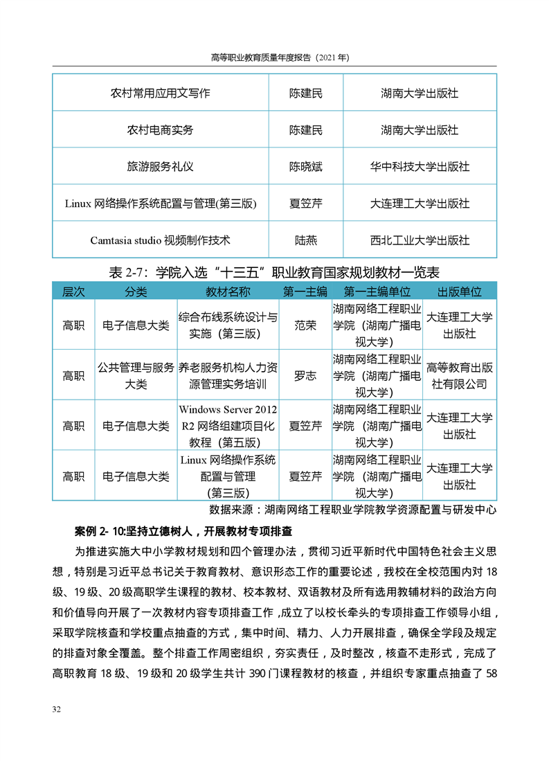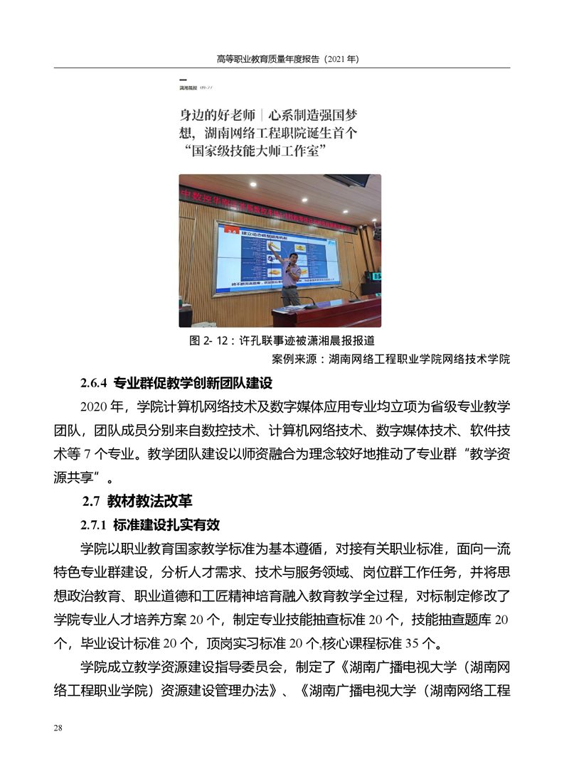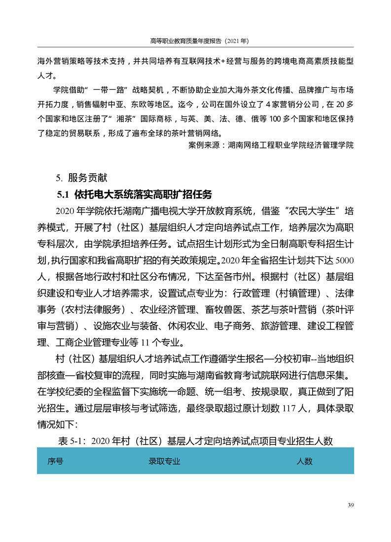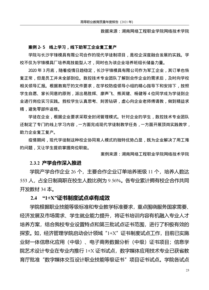 湖南网络工程职业学院高等职业教育质量年度报告(2021)