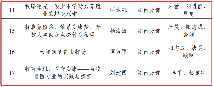国家开放大学“牧育生机 医守安康”主题征文活动湖南分部获奖结果截图