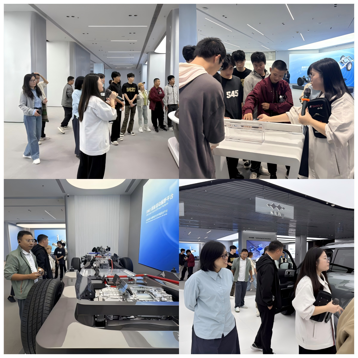 随后,师生深入新能源汽车车间,在专业技术人员指导下,近距离观察关键工序,对比人工工位与智能工位效率差异,直观感受“三电”核心技术背后的数字力量。同学们就生产工艺优化、设备运维难点与企业工程师展开交流,将课堂所学的机械设计、自动化控制知识与现场实践精准对接,在真实场景中提升技术应用能力。